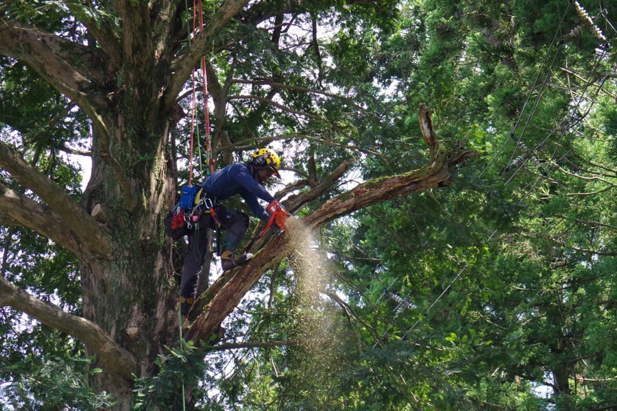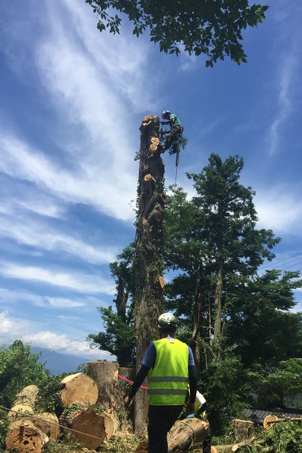 昨年の台風15号では多数の木が倒れ、大規模な停電となり、千葉県を中心に甚大な被害が発生しました。電線や建物が隣接するところでは伐倒スペースが無く、根元から伐採することが出来ません。またクレーン等の重機の搬入も困難です。