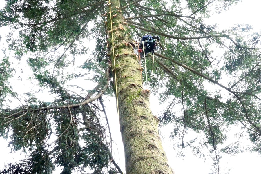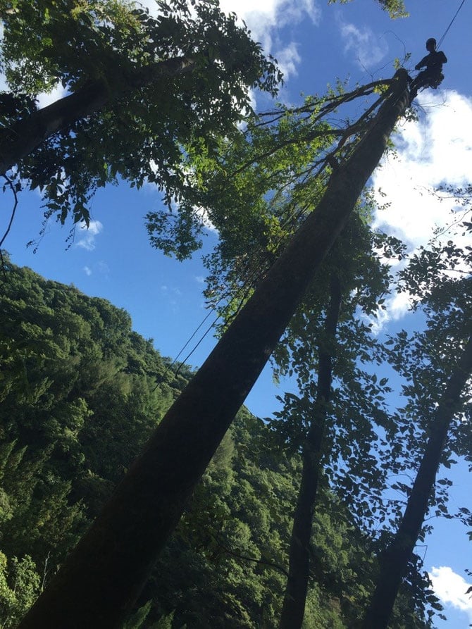→リムウオーク→樹上ポジショニング→セルフビレイ降下→アンカー回収